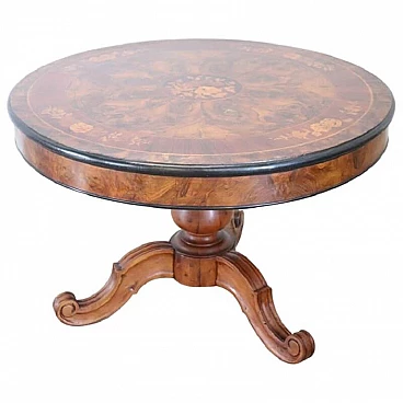 Bellissimo importante tavolo rotondo antico, anni 1850 in noce. Il piano presenta prezioso lavoro ad intarsio. La decorazione intarsiata è di gusto floreale realizzata con piccoli pezzi di legni diversi e preziosi. Si prega di guardare tutte le immagini per capire la bellezza di questo tavolo. Il grande e solido gambo centrale in noce tornito. Questo tavolo è perfetto per abbellire un soggiorno. Le sue dimensioni sono grandi, quindi puoi anche usarlo come tavolo per mangiare. Questo tavolo è stato restaurato è pronto per essere inserito nella tua elegante casa.
