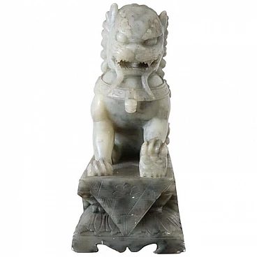Bellissima scultura antica in preziosa giada verde antiquariato orientale provenienza Cina seconda metà Sec XIX. Raffinata figura di leone nella cultura simbolica cinese questa tipologia di sculture si può trovare in grandi dimensioni all'ingresso di un tempio del quale sono i custodi.