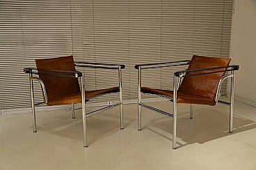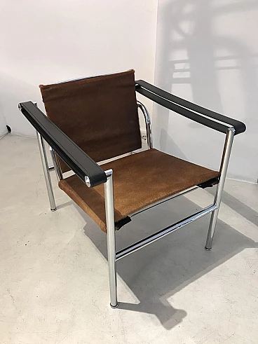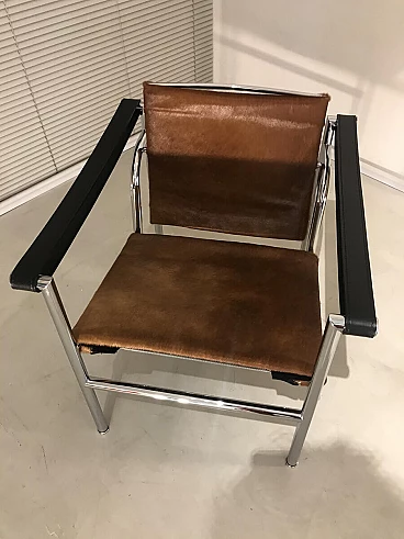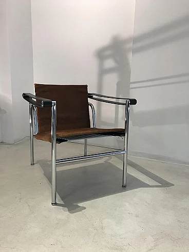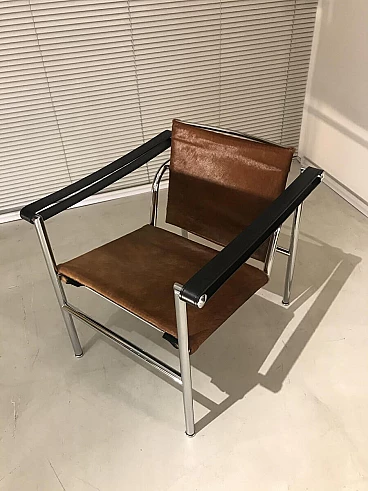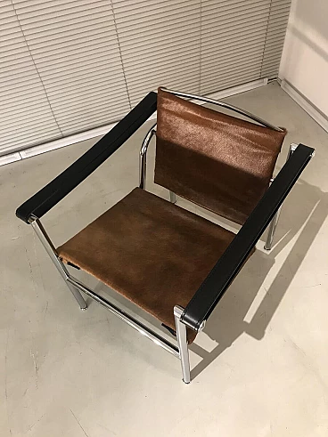 Poltrona LC1 in acciaio cromato e cavallino di Le Corbusier per Cassina, anni '70
