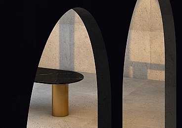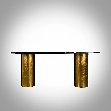Tavolo da pranzo Ellisse Nq1 in acciaio dorato e marmo nero