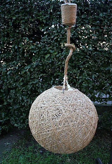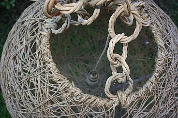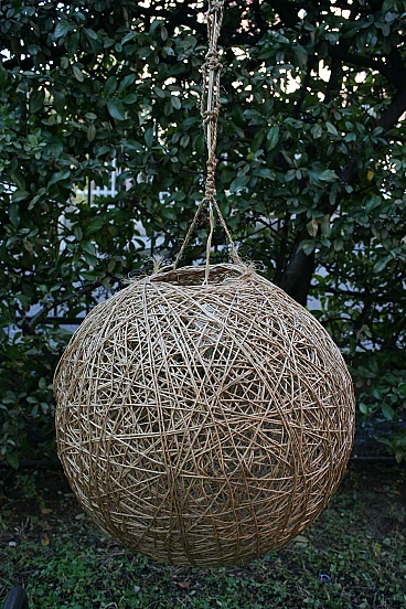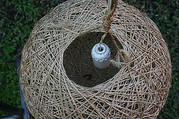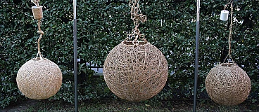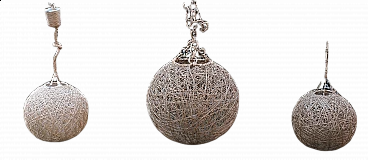 3 Lampade da soffitto a sfera in fibra naturale, anni '80