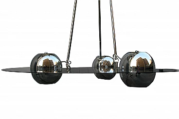 Lampadario Space Age in metallo cromato e smaltato nero, anni '70