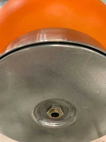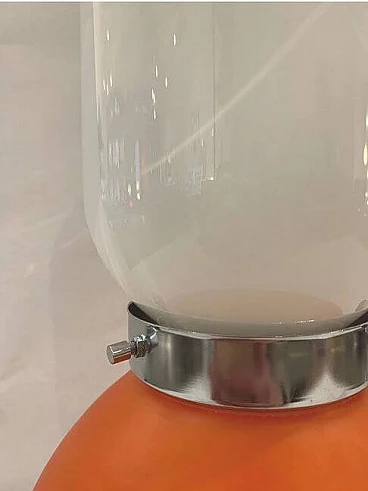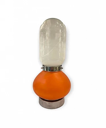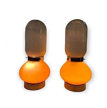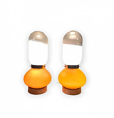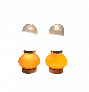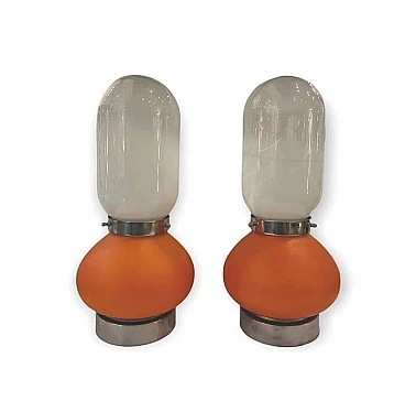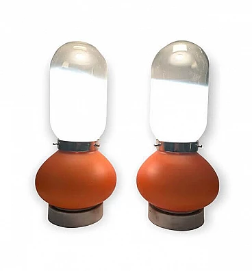 Coppia di lampade da tavolo space age in vetro arancio e bianco