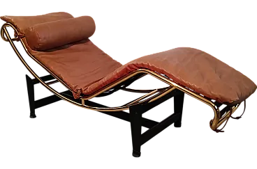 Chaise longue in metallo cromato e pelle rossa, anni '90