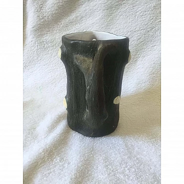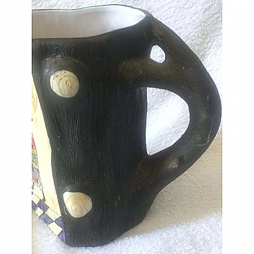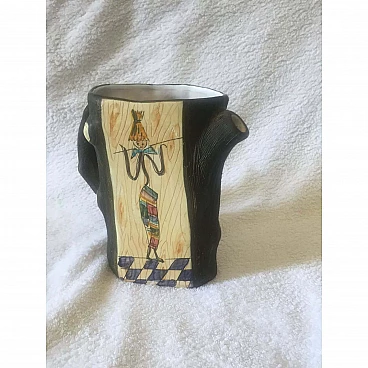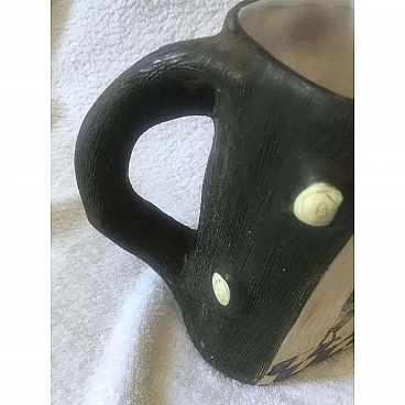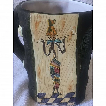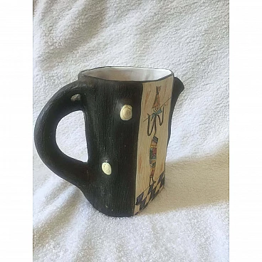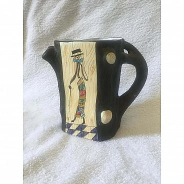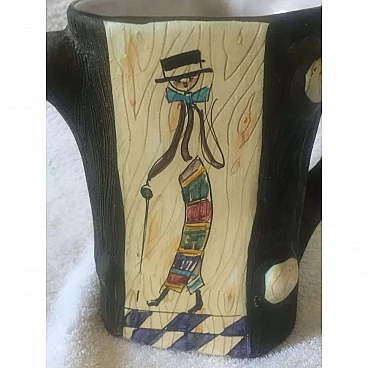 Brocca in ceramica dipinta con figure stilizzate, anni '60