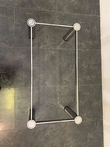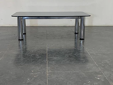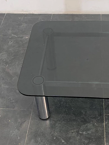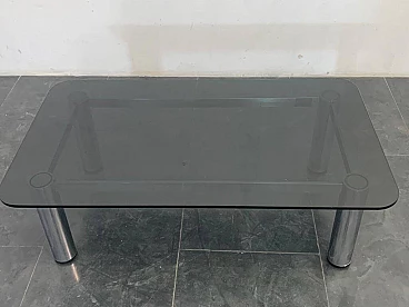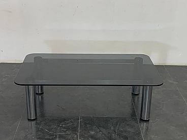 Tavolino in acciaio con piano spesso in cristallo fumè, anni '70