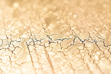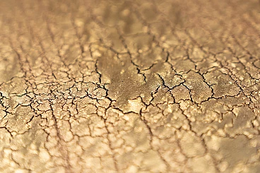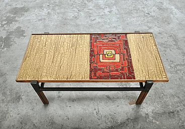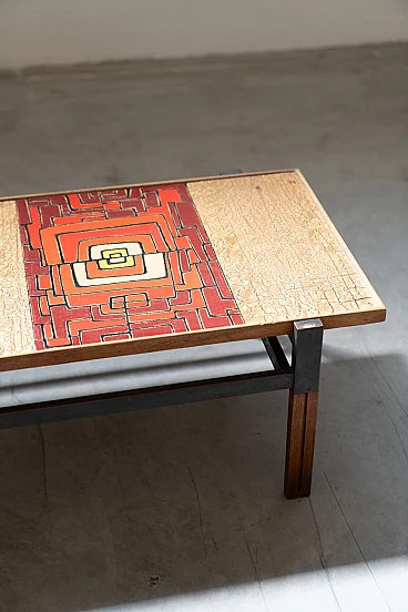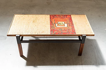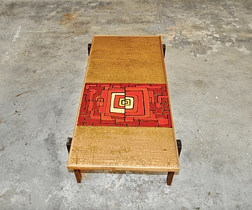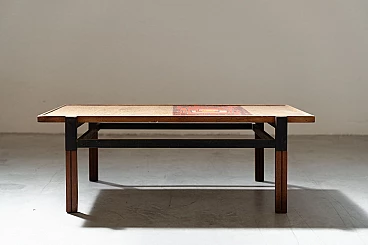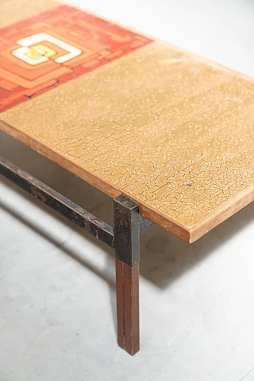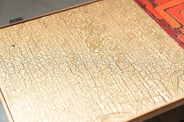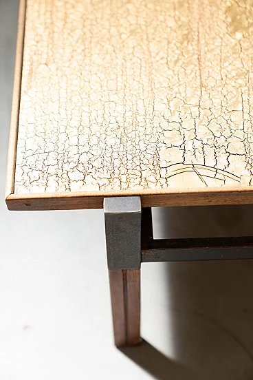 Tavolino in afrormosia, resina e craquelé dorato, anni '50