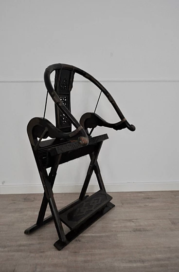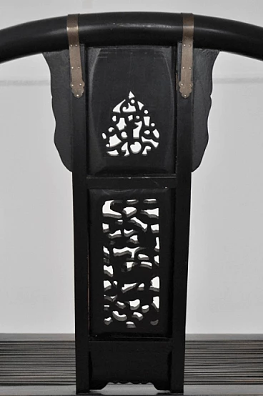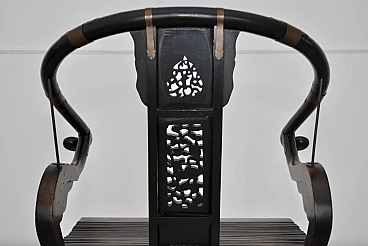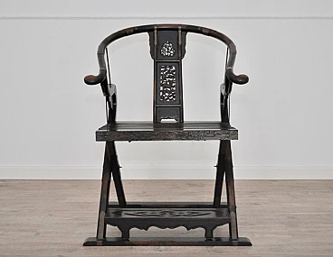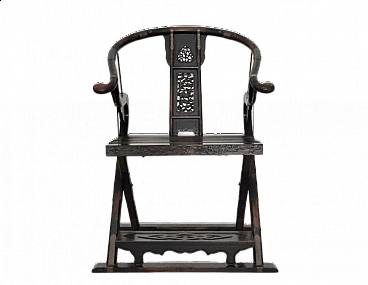 Sedia cinese pieghevole in legno di olmo e metallo, fine '800