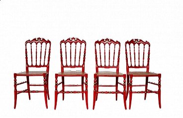 4 Sedie Chiavarine laccate rosse e oro, anni '50