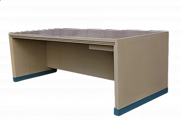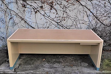 Tavolo da studio medico in legno tamburato con piano in pelle, anni '70