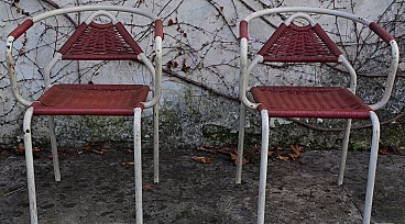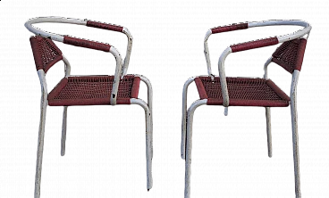 Coppia di sedie in ferro e corda di plastica, anni '50