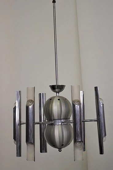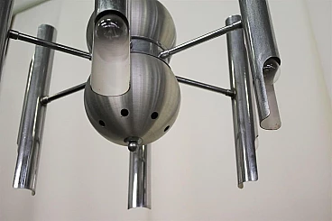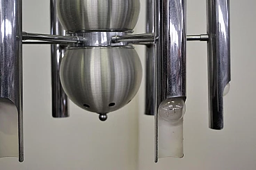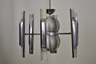 Lampadario in metallo cromato e vetro di Toscana Luce, anni '70
