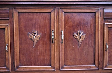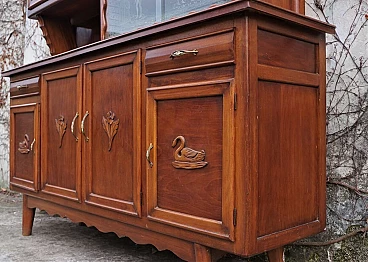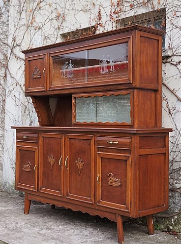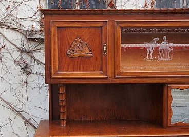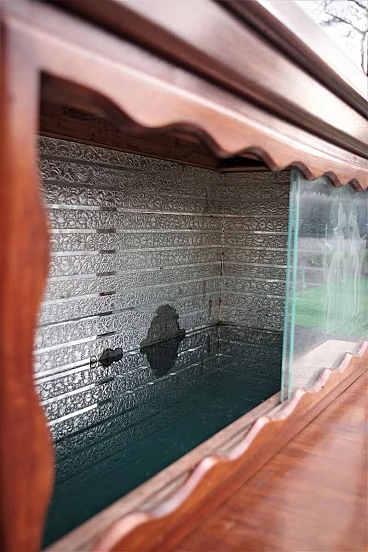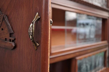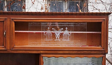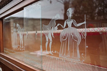 Vetrina in faggio, ottone e vetri decorati, anni '50