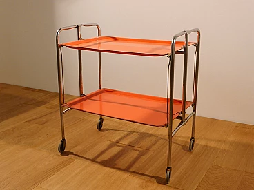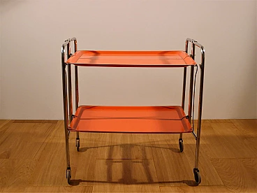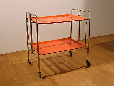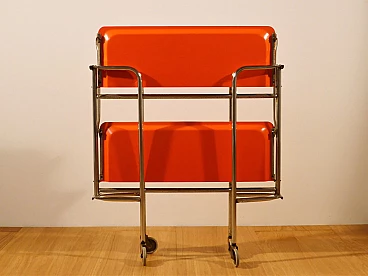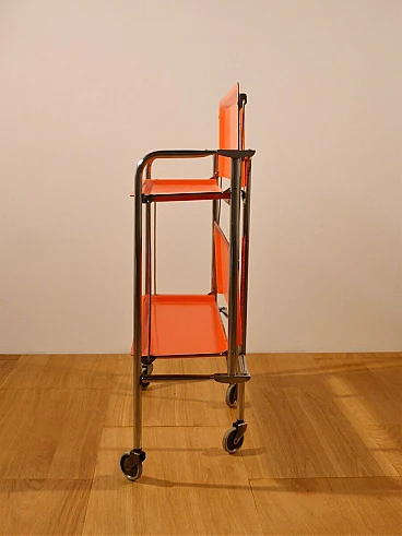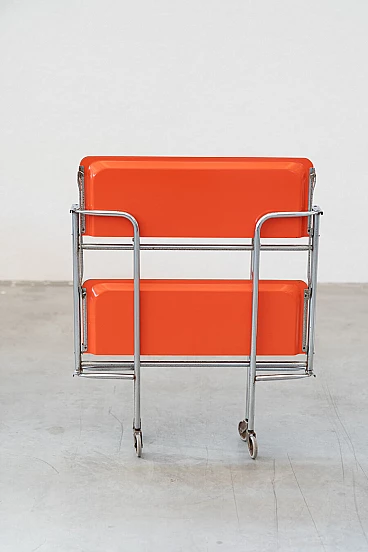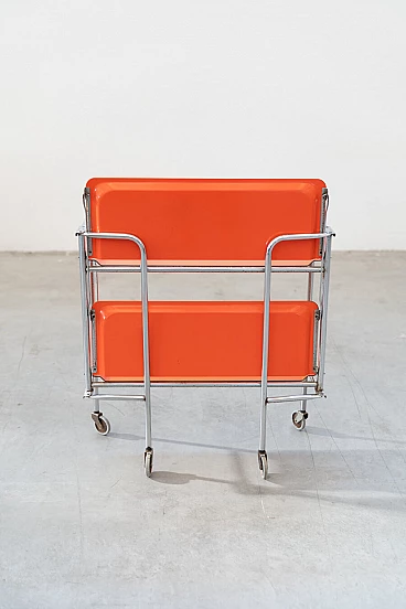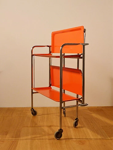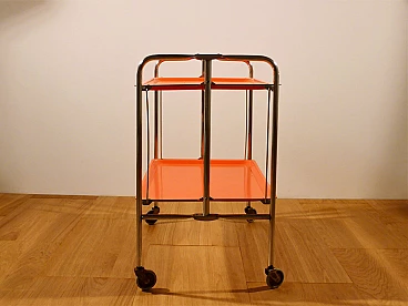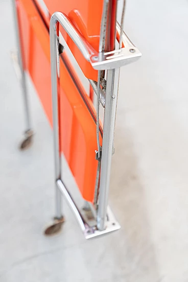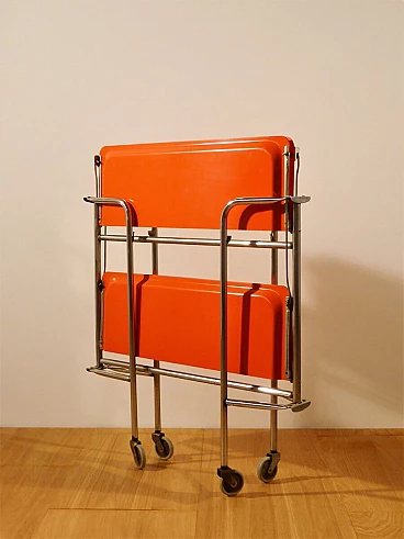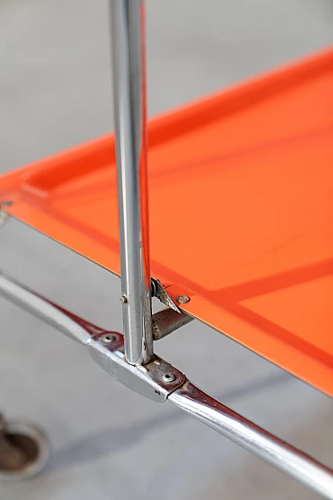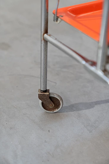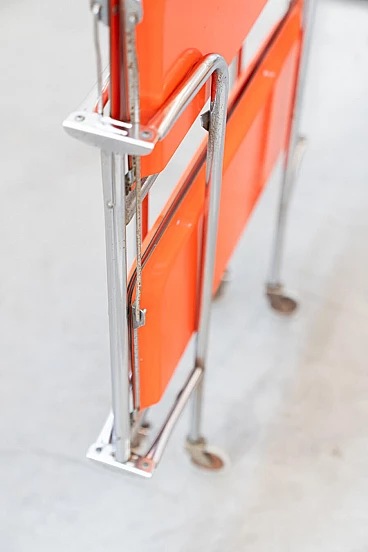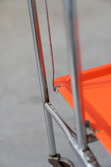Carrello pieghevole arancione in plastica e metallo, anni '70