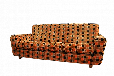 Divano con 3 sedute in ciniglia quadri colorato con piedini in legno. Leggera usura dovuta all’età e all’utilizzo.