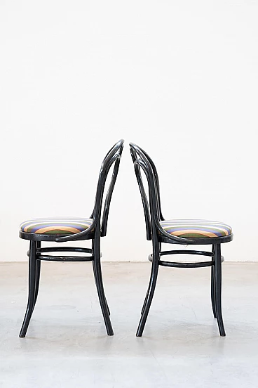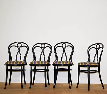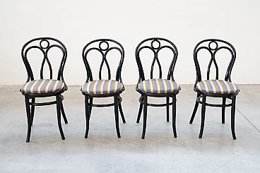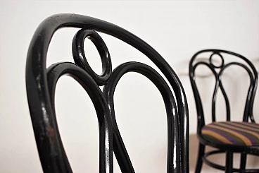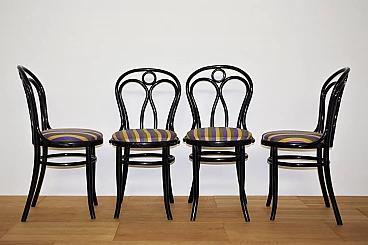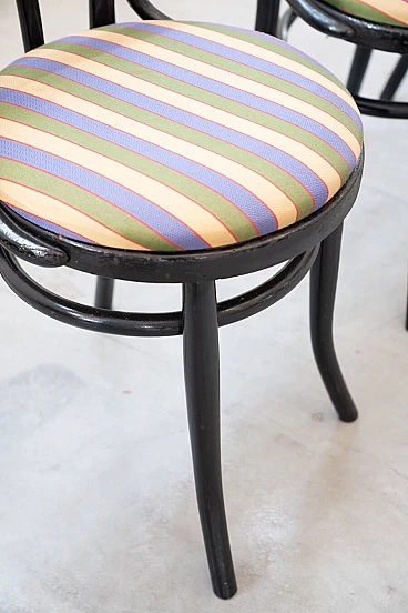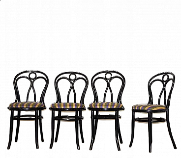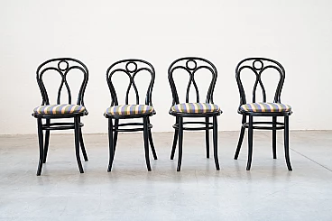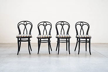 4 sedie nere Thonet con seduta in tessuto, anni '50