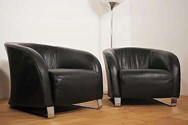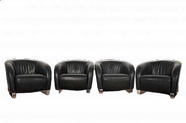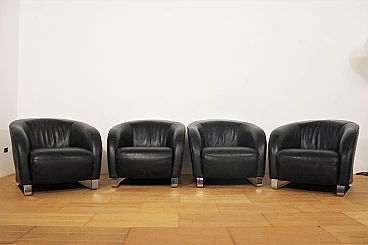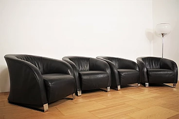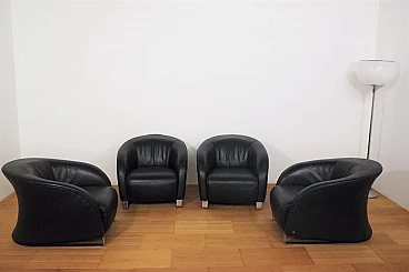 4 poltrone Liz di Natuzzi in pelle nera, anni 2000