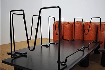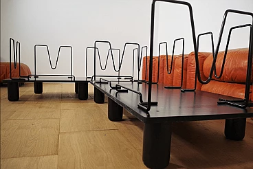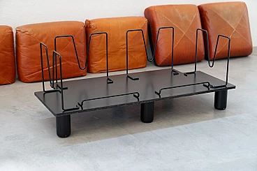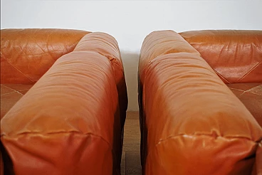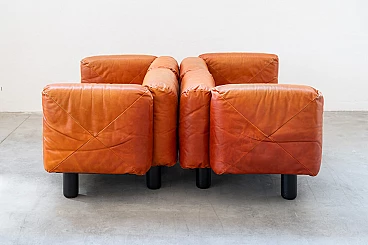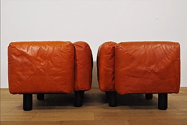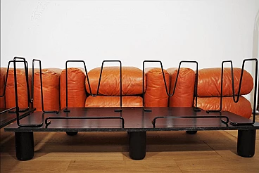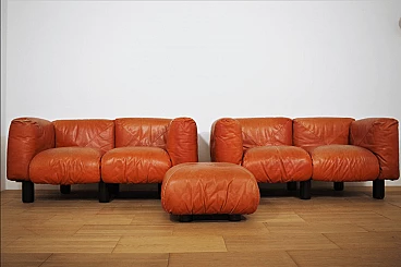 Coppia di divani e pouf Techniform in pelle arancione di Mario Marenco per Arflex, anni '70