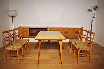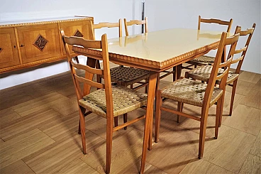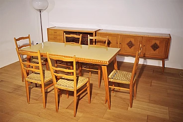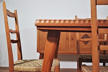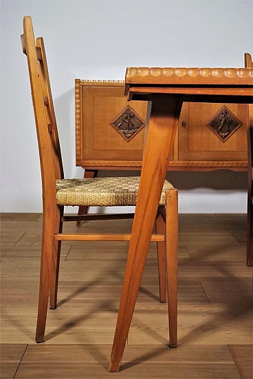 Tavolo, sedie e credenza in legno di Melchiorre Bega, anni '40