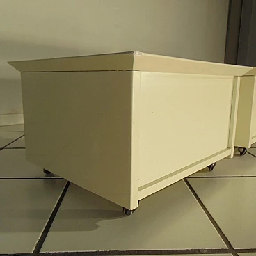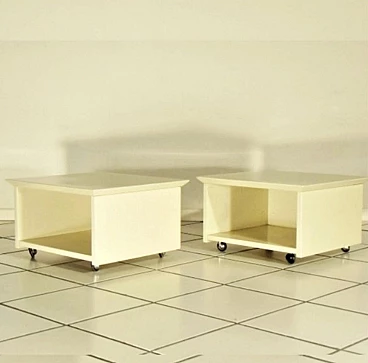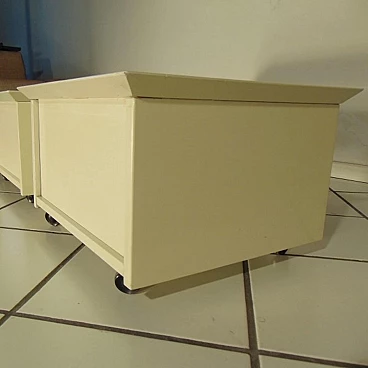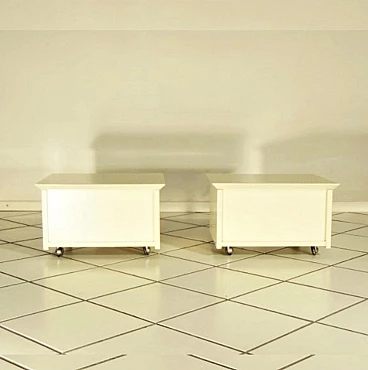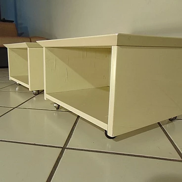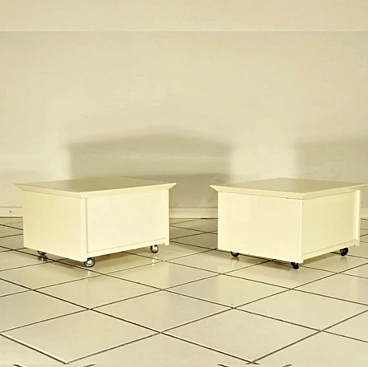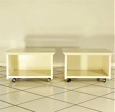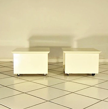 Coppia di comodini su rotelle di Claudio Salocchi per Sormani in lacca speciale sabbia, 1975