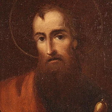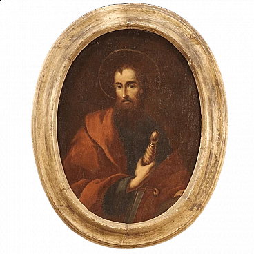 Antico dipinto italiano del XVII secolo. Opera olio su tela raffigurante soggetto religioso San Paolo di buona mano pittorica. Dipinto di forma ovale con cornice lignea antica con diversi segni de tempo, piccoli fori di tarli non attivi e segni di vecchi interventi di restauro (vedi foto, da restaurare). Quadro di bella misura e piacevole arredamento per antiquari, arredatori e collezionisti di arte sacra antica. Tela che ha subito un intervento di restauro conservativo, rintelo, sostituzione del telaio e ripresa del colore in diversi punti (vedi foto). Opera nel complesso in discrete condizioni, cornice strutturalmente sana da restaurare. Luce dipinto H 87 x L 65 cm.