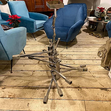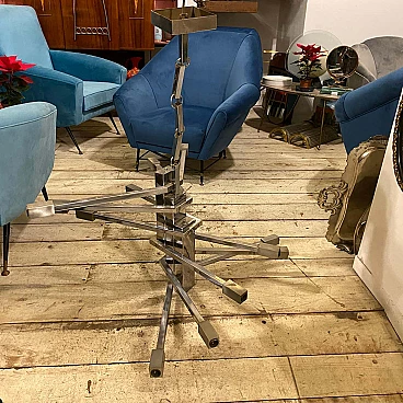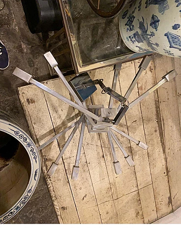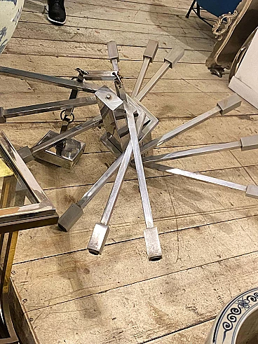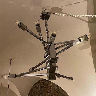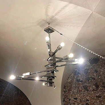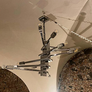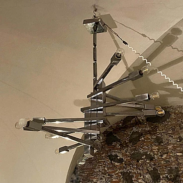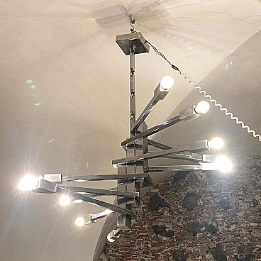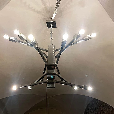 Lampadario a 12 luci in acciaio attribuito a Sciolari, anni '70