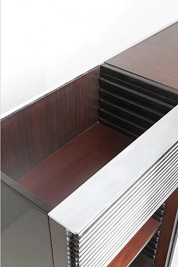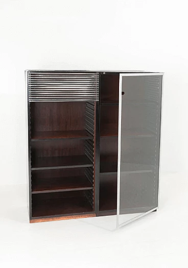 Vetrina in legno, acciaio cromato e vetro, anni '70