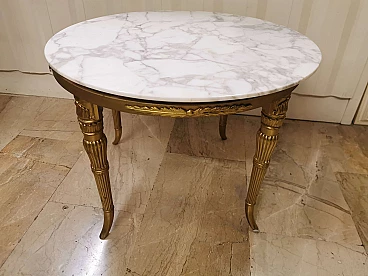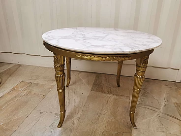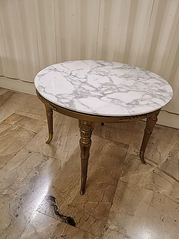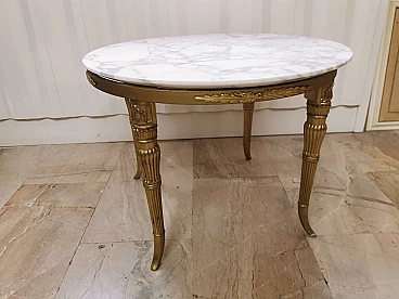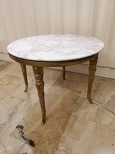 Tavolino stile Impero in ottone e marmo di Carrara, anni '60