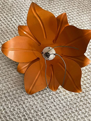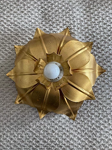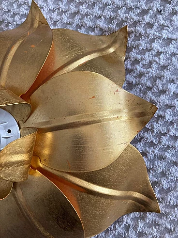 Plafoniera Magnolia dorata a foglia di Rino Baglini, anni '80