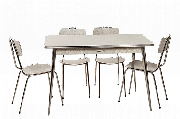 Tavolo da pranzo con 4 sedie in formica e metallo, anni '50