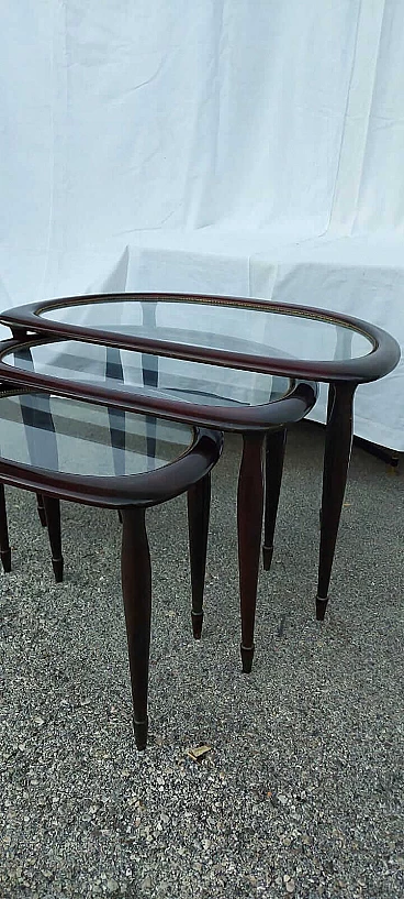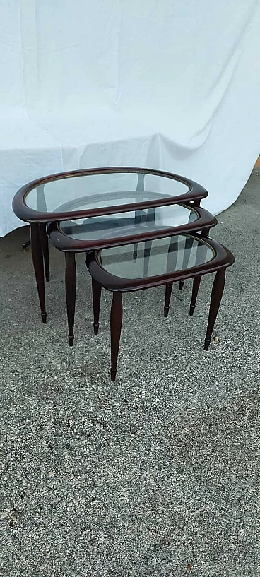 Tavolini a nido in legno con piano in vetro, anni '50