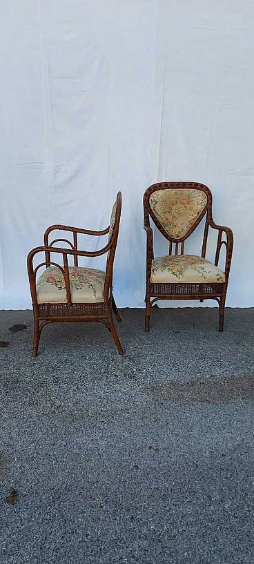 Coppia di poltrone in vimini e tessuto di Magazzini Marchesini, anni '50