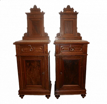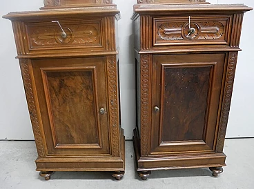 Coppia di comodini in noce con piano in graniglia, inizio '900
