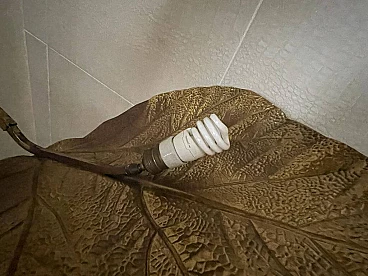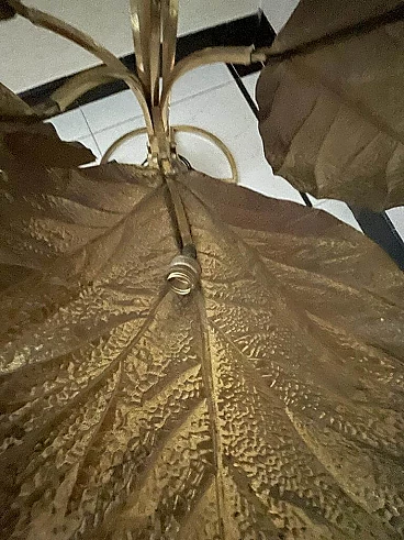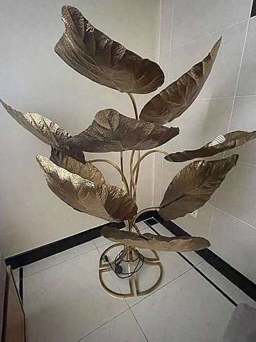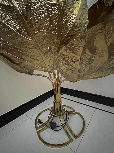 Lampada da terra con 9 foglie in ottone di Tommaso Barbi, anni '70