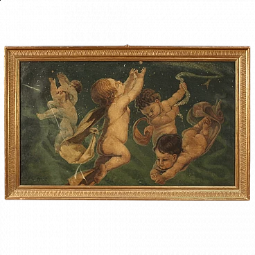 Gioco di putti su cielo stellato, dipinto italiano olio su tela