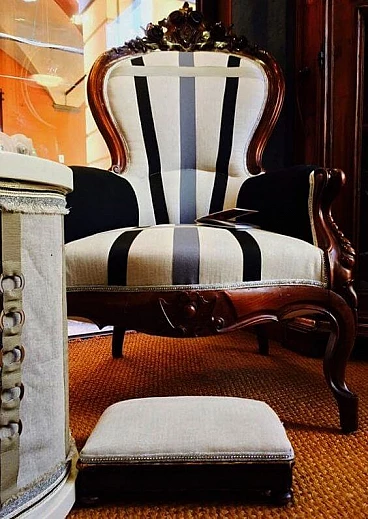 Poltrona Luigi Filippo con poggiapiedi, '800