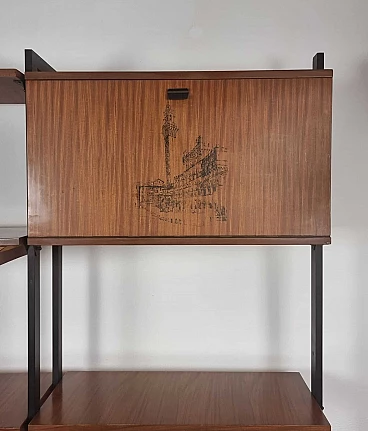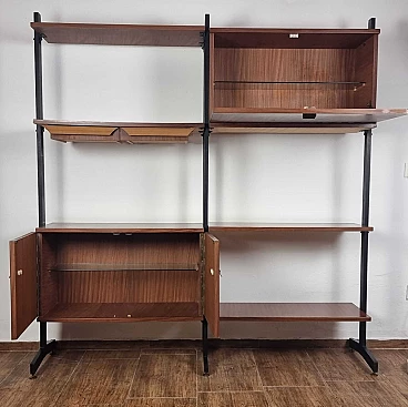 Libreria in metallo nero e legno, anni '60