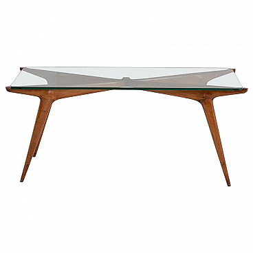 Tavolino da fumo in vetro e legno di Carlo de Carli, anni '50