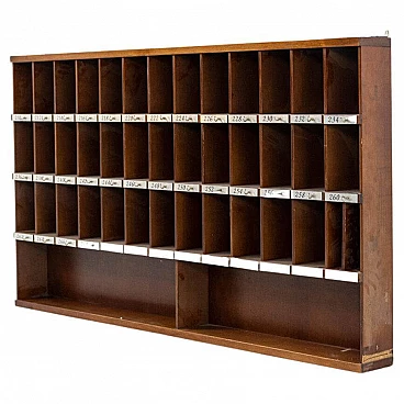 Armadietto portachiavi d'albergo degli anni '60: è stato preso da un vecchio hotel italiano e faceva parte di una reception. Il mobile portachiavi ha molti ripiani e scaffali per conservare le chiavi secondo la loro numerazione predeterminata di ogni stanza. Ha ancora la vecchia numerazione in acciaio con ganci attaccati. In buone condizioni e ha dei graffi dovuti all' età. L'armadio è ideale come mobile in una stanza in stile industriale e vintage e può servire come porta documenti e libreria.