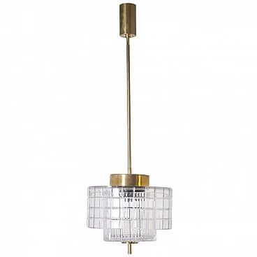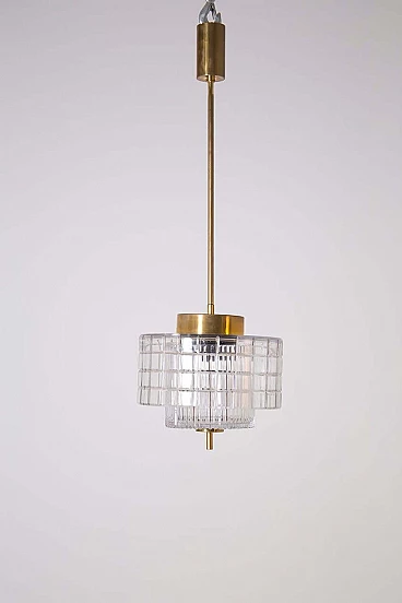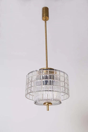Lampadario a soffitto in cristallo di Boemia e ottone, anni '60