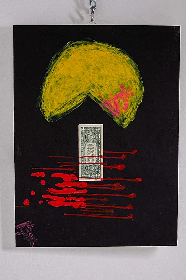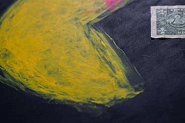 Quadro di Bomberbax ispirato alla Blockchain raffigurante Packman, anni 2000