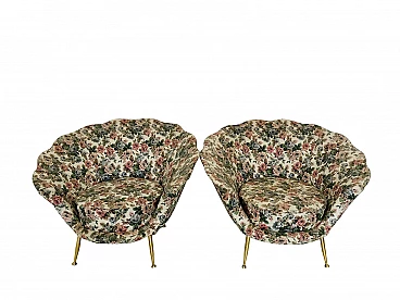 Coppia di poltrone a conchiglia, tessuto floreale, anni '60