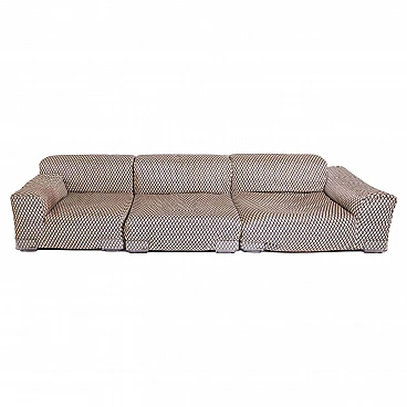 Divano modulare a tre posti realizzato da Kartell della collezione "Memphis" disegnata da Ettore Sottsass. L'imponente divano a tre moduli può essere trasformato a proprio piacimento e gusto: infatti è possibile creare un divano a due posti unendo i moduli laterali con i braccioli e/o una poltrona senza braccioli utilizzando il modulo centrale. Ogni modulo ha una larghezza diversa dagli altri moduli, piedini in plastica marchiati Kartell. Tessuto a rete Memphis in beige e nero sfoderabile. Il bellissimo divano Ettore Sottsass è ormai fuori produzione, quindi è un pezzo molto raro da trovare. È in condizioni buone e originali, non ha graffi o difetti, ma si può vedere qualche piccolo alone nel tessuto, usura coerente con il suo tempo e l'uso. Il divano sarà totalmente igienizzato prima della spedizione.