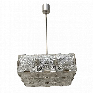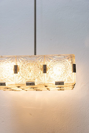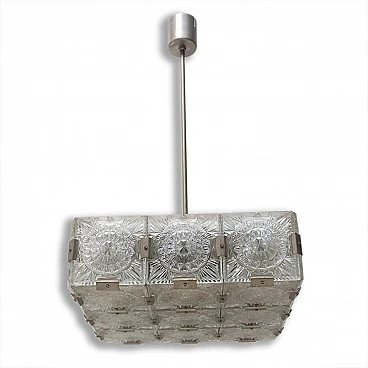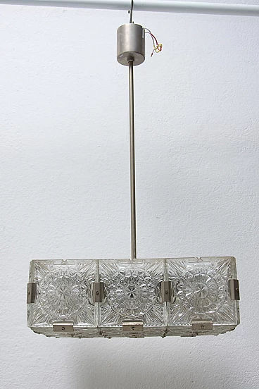 Lampada a sospensione in vetro e acciaio cromato di Kamenický Šenov, anni '70