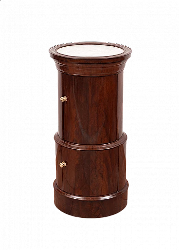 Comodino a cilindro francese Impero in piuma di mogano con piano in marmo bianco, '800