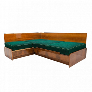 Divano letto angolare disegnato da Jindřich Halabala. È stato realizzato nell'ex Cecoslovacchia nel 1950. Questo divano ha una struttura in legno impiallacciato in noce. Il divano è regolabile per dormire ed è in ottime condizioni. Altezza del sedile: 43 cm