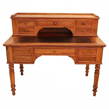 Scrivania antica in noce massello databile intorno alla metà del secolo XIX, in pieno stile Luigi Filippo. La scrivania è caratterizzata da tipiche gambe tornite, destinata ad essere collocata a muro. Dotata di alzata con cinque pratici cassettini e altri quattro cassetti nella fascia. Il piano rivestito in pelle è estraibile dando la possibilità di avere maggior spazio utile per la scrittura. Ottime condizioni generali alcuni segni di usura nella pelle del piano. Vi consigliamo comunque di guardare bene in dettaglio tutte le foto allegate. Proposta ad un ottimo prezzo trattabile vi invitiamo ad inviarci le vostre proposte di acquisto le valuteremo con piacere. Imballo professionale, spedizioni assicurate con corrieri, consegna su appuntamento solo piano strada, no facchinaggio ai piani.