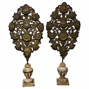 Coppia di porta palme in legno laccato e metallo, '800