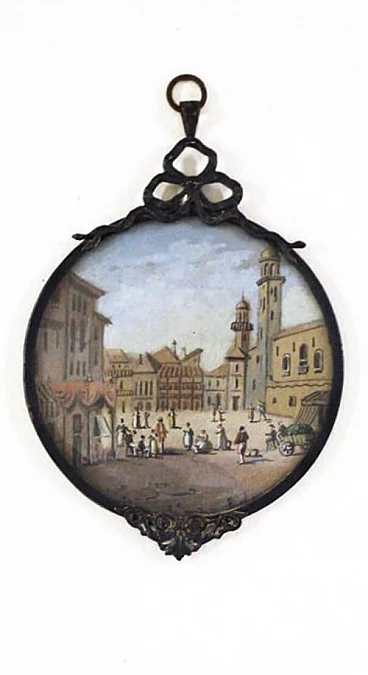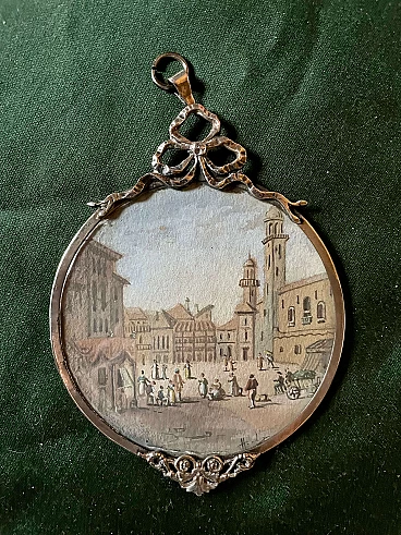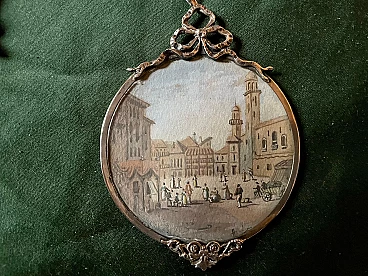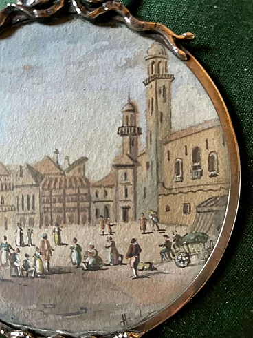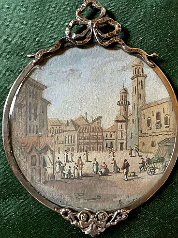 Miniatura con scorcio di città in cornice d' argento, del '800