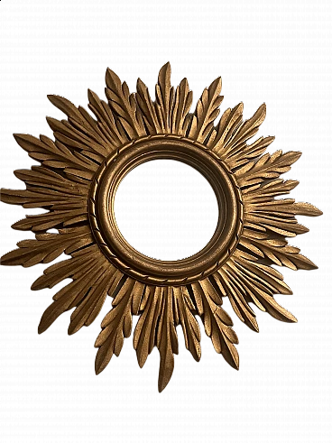 Specchio a forma di sole in legno dorato